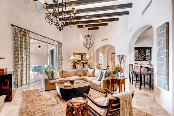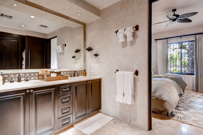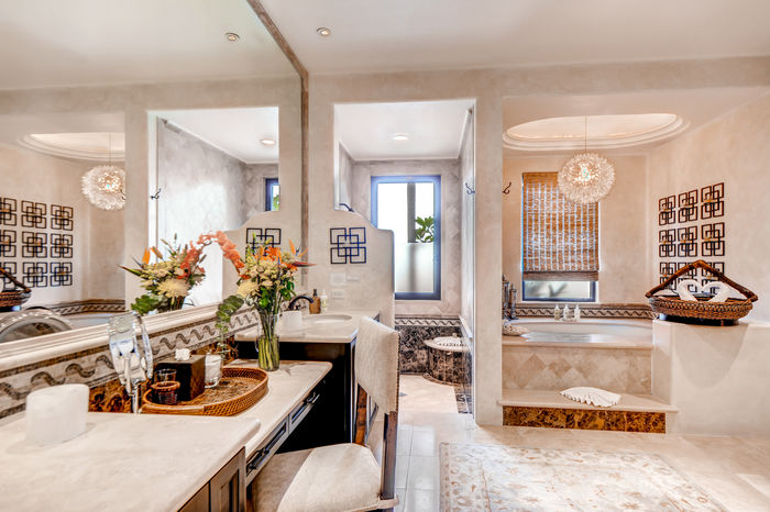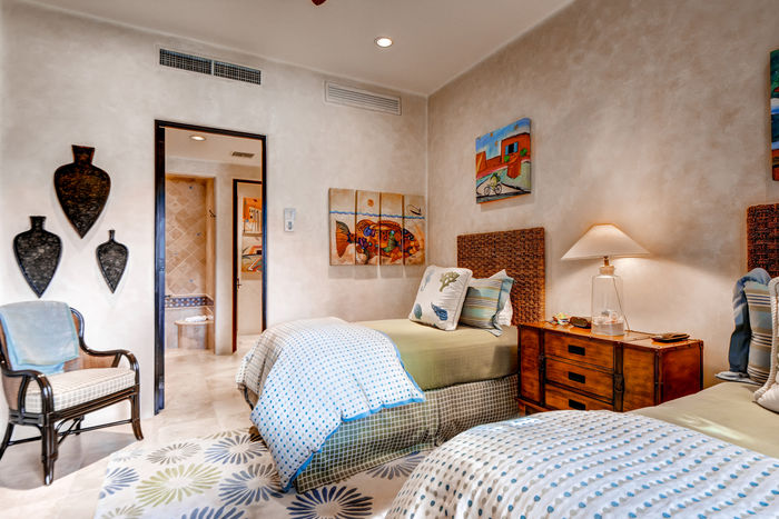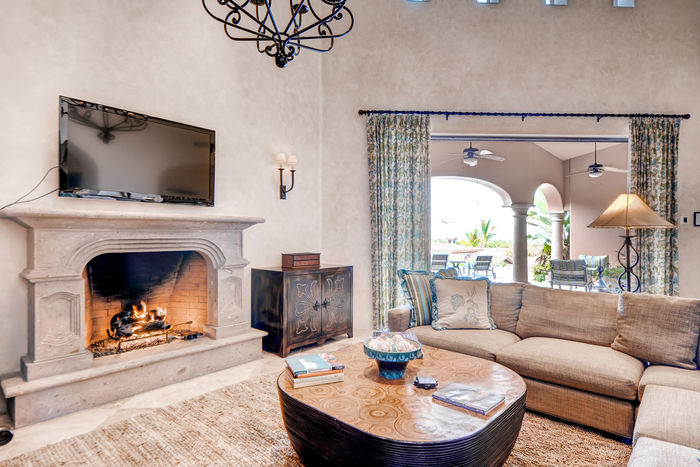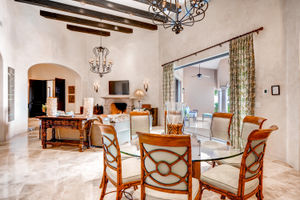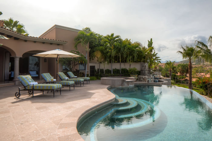 Nestled in the heart of Los Cabos, Villa Cielos is a beautifully designed hacienda-style retreat that effortlessly combines luxurious comfort with laid-back coastal charm, accommodating up to 6 guests. Ideal for families or groups, this spacious home features two master suites and two additional bedrooms, offering four full bathrooms and two half baths. The open-concept great room includes modern technology, high-speed Wi-Fi, and a private office for remote work needs, making it just as functional as it is stylish. A gourmet kitchen equipped with premium appliances and a built-in wine fridge is perfect for home-cooked meals or hosting a private chef to elevate your stay. Outside, enjoy a resort-style setting with a heated pool, hot tub, fire pit, covered terrace, and alfresco dining area with a gas grill—ideal for entertaining under the Baja sky. With elegant interiors, ample lounging space, and thoughtful amenities like a washer and dryer, Villa Cielos is the perfect base for a luxurious and memorable escape in Los Cabos.