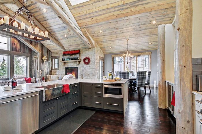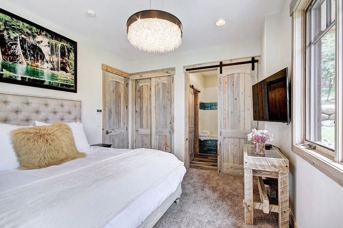 Just six minutes from downtown Breckenridge, this stunning mountainside estate is the perfect retreat for up to 12 guests, blending luxury, comfort, and ample space. Spread across three levels, the home features elegant décor, local artwork, modern design, and breathtaking views of the Breckenridge valley from expansive decks. The heart of the home is an open-concept living, dining, and gourmet kitchen—ideal for gatherings and entertaining. The main level includes a master suite with a show-stopping nickel and copper tub, a wraparound deck with a six-person hot tub, and a hidden media room. Downstairs, you'll find a second master suite, a double queen room, a cozy deck room with outdoor access, a sauna with built-in radio, and a coffee/tea bar. Perfect for families, this luxurious estate offers both privacy and unforgettable shared moments in the heart of Colorado’s mountains.