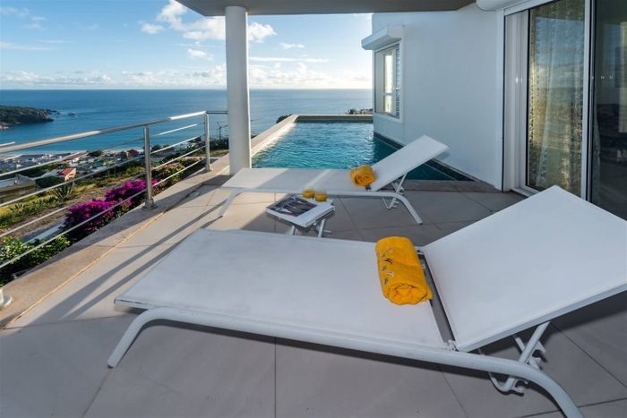 Perched above the turquoise waters of Little Bay and Great Bay, this elegant 3-bedroom villa sleeps up to 6 guests, offering a perfect blend of seclusion and island excitement. Just minutes from Philipsburg, Sint Maarten's vibrant capital, you'll enjoy both peaceful privacy and easy access to local shops, restaurants, and nightlife. The spacious villa features floor-to-ceiling windows framing stunning ocean views and three en-suite bedrooms, including a master suite with a king bed and two queen-bed rooms, all with walk-in closets and private outdoor access. The expansive terrace is a highlight, with a private infinity pool, sun loungers, and a covered dining area—ideal for soaking up the Caribbean sun or enjoying dinner under the stars. Designed for comfort and tranquility, this villa is the ultimate retreat for a family or friends’ getaway.